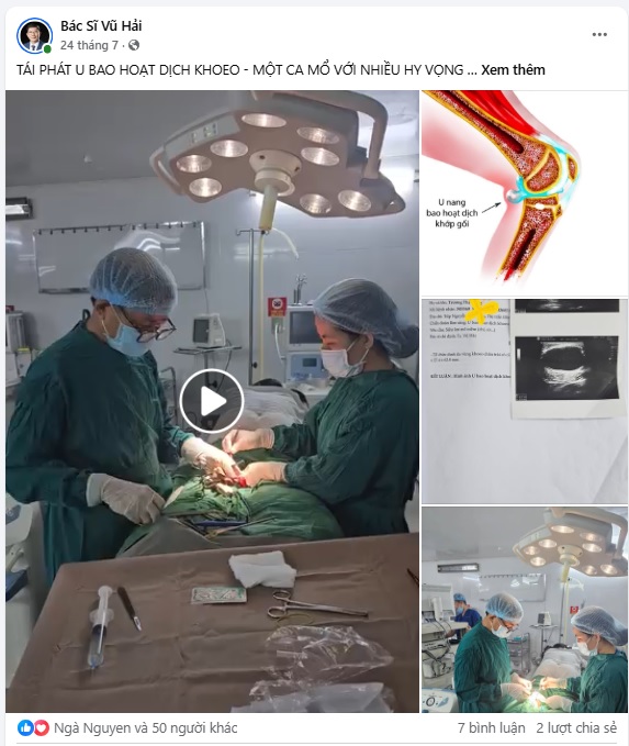 Phòng khám bác sĩ Vũ Hải có chuyên môn cao trong phẫu thuật u bao hoạt dịch, chi phí mổ tiết kiệm, sắp xếp lịch mổ nhanh chóng bệnh nhân không cần phải chờ đợi